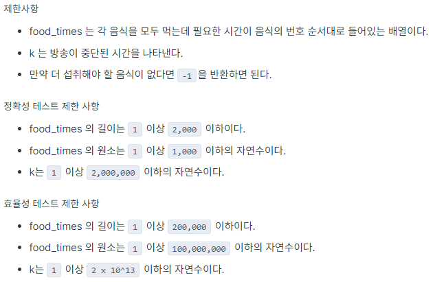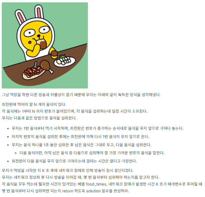 코딩테스트 연습 - 무지의 먹방 라이브