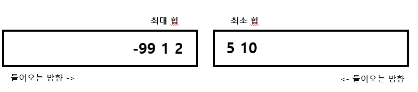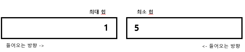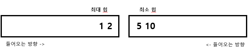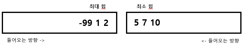 즉, 최대힙과 최소힙의 크기가 같을 경우는 무조건 최대힙에 값을 넣겠다.