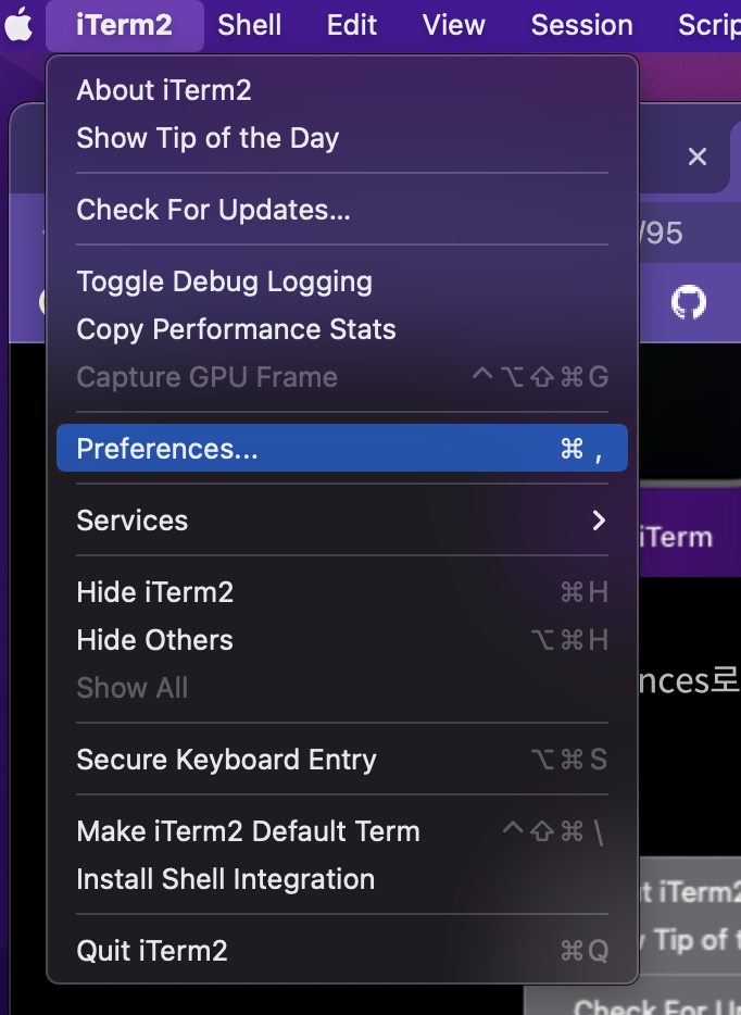 2) 위에서 다운받은 iTerm2를 열고, 아래의 명령어 실행